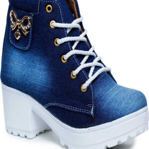 High Ankle Denim Boots For Women’s And girls Boots For Women (Blue)